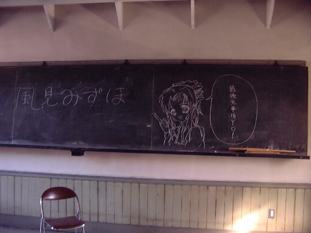 黒板のある教室には片っ端からソレっぽい絵とか[好きだ!]とか書かれていました。フツーの観光客が踏み入れたら疑問に思うだろうな・・・
