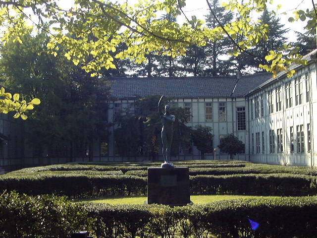 あがたの森公園内です。学校の先には広々とした庭園が広がっていました。