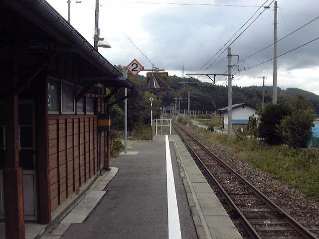 ホームから大町方面を望むと、今にも制服姿の小石が出てきそうですが・・・いつまで待っても来ませんでした(プ