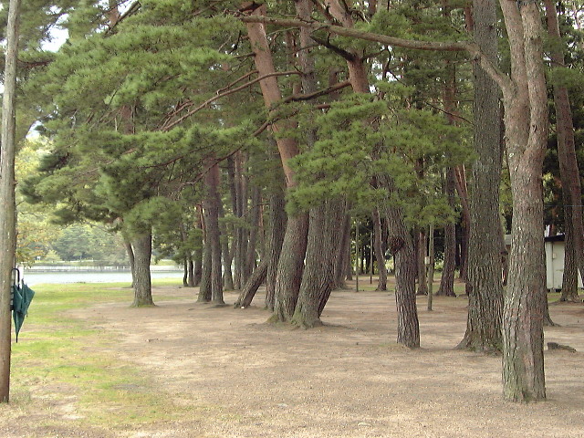 ちょっと左側に視界をずらしてみました。アニメで同じみの針葉樹が現れますが、草薙桂が寝転んでいた坂はもっと離れたところにありました。