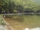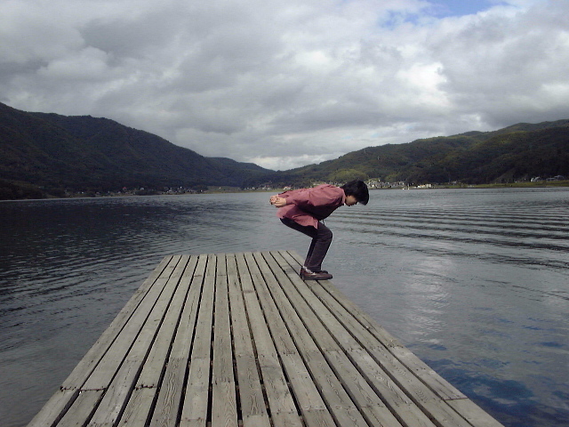 お約束です(笑) この後[みずほセンセー]とか叫びながら湖に向かって飛び込んだのは言うまでもありません・・・というのはウソで、この体勢で携帯とか車の鍵が落っこちないか心配でした(^^; ちなみに湖の底まで1.5mくらいでしょうか。きれいに底が見えました。