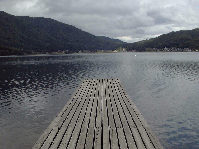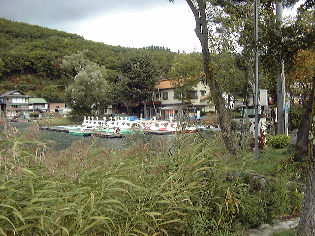 線路側から見た駅舎です。ちなみにここで静岡から新婚旅行(?)に来たカップルに遭遇しました。展望台の場所が判らなかったそうなので、教えてあげました(^^;; 我々は湖を一周するので、彼らとここで別れました。