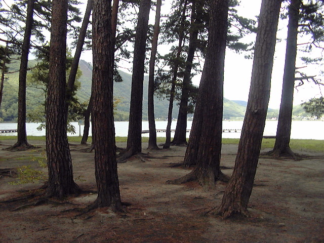 先生が指差していた方向です。何もありませんでした・・・先生は新緑の美しさを教えたかったのでしょうか。ちなみに新緑よりも先生のほうが綺麗なのは言うまでもありませんです、ハイ(笑) それはさておき、右奥には遊覧船乗り場があります。