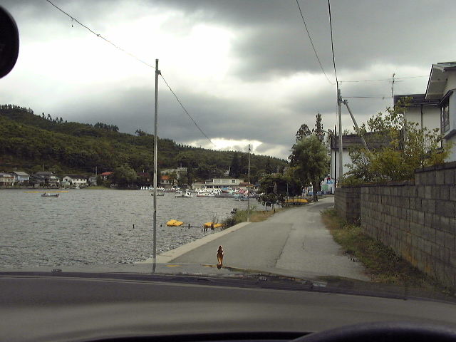 遊覧船乗り場に向かう道は狭くて落っこちそうです(笑) ここで落ちたら木崎湖に転落したプレジデント第一号車になれそうですがそれはそれで無惨(^^;